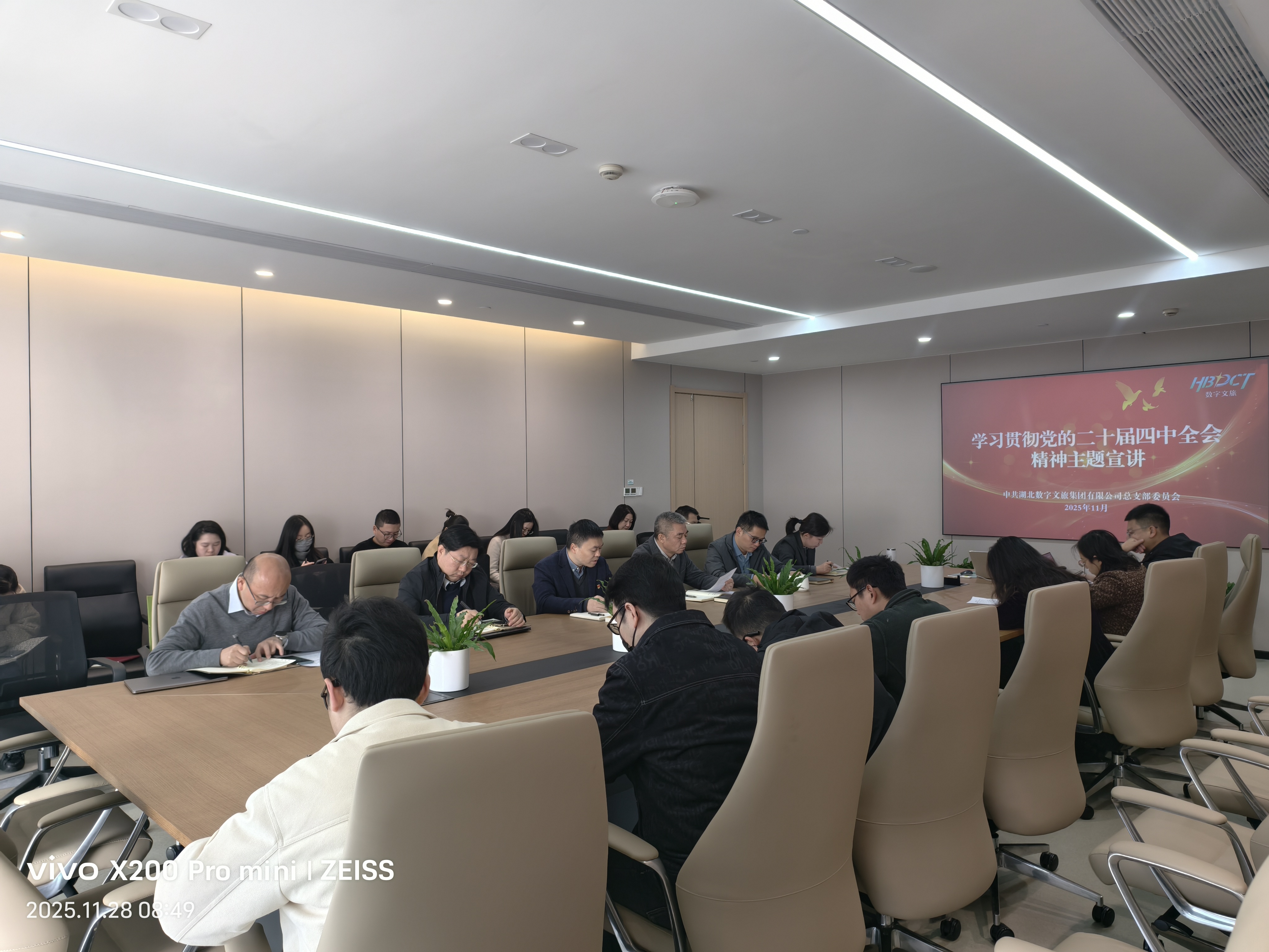 按照集團(tuán)黨委統(tǒng)一部署,11月28日,數(shù)旅集團(tuán)黨總支學(xué)習(xí)貫徹黨的二十屆四中全會(huì)精神宣講暨專題學(xué)習(xí)(擴(kuò)大)會(huì)議在27樓會(huì)議室舉行。集團(tuán)黨委宣講團(tuán)成員、數(shù)旅集團(tuán)黨總支書記、董事長張啟駿作宣講報(bào)告。