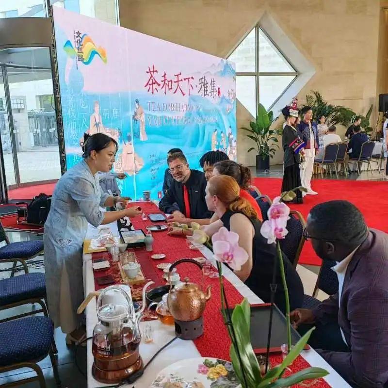 “茶和天下”·雅集活動走進美國華盛頓、紐約。5月21日“國際茶日”當天,由湖北省文化和旅游廳與中國駐美國大使館聯(lián)合舉辦的2024年度“茶和天下”•雅集活動在華盛頓中國駐美國大使館內成功舉辦。中國駐美國大使館公使井泉、湖北省文化和旅游廳二級巡視員孫旭出席活動并致辭,20多個國家駐美國的大使、公使、參贊,以及美國政治、經濟、文化、旅游等各界的來賓200余人出席活動,近距離感受了博大精深的中國茶文化,體驗了荊風楚韻的獨特魅力。